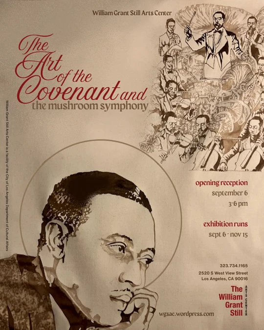 The Art of the Covenant and the Mushroom Symphony is a spiritually infused exhibition by self-taught visual artist and mycologist Jah Orah, born in Pomona and raised in Los Angeles. Known for transforming organic materials (especially mushroom coffee) into abstract visual narratives, Orah’s work bridges ancestral wisdom, cultural symbolism, and environmental consciousness. Painted on raw cotton canvas, each piece in The Art of the Covenant series functions as a portal for reflection and transformation. Rooted in Afrofuturism and natural alchemy, this body of work invites viewers to awaken their senses, honor resilience, and reimagine what’s possible. The exhibition includes new works and portraits of local legends rendered in richly organic form.